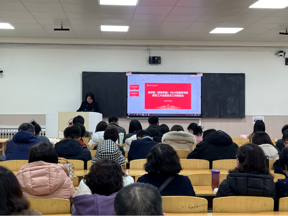 为扎实贯彻落实学校点工作,推动学院事业高质量发展,2月28日,言情小说 (管理学院)在天平楼B座107教室召开春季学期重点工作部署会。全体教职员工及本预科生、研究生代表参加会议,会议由学院党委副书记、副院长蔺媛主持。