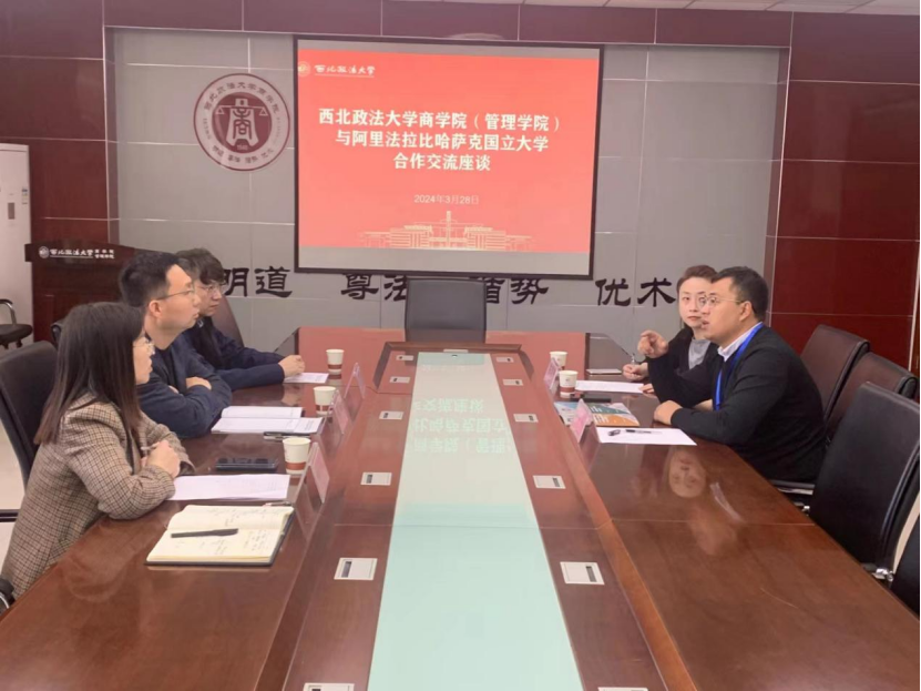 赵参代表学院向高哈尔·阿力马斯一行来访表示欢迎,并介绍了学院基本情况、人才培养及合作交流等方面。高哈尔·阿力马斯主任对阿里法拉比哈萨克国立大学的基本概括、学科设置、学生培养等情况进行了介绍。随后双方就两校工商管理类相关学科建设、教师互访、学生联合培养、学术会议交流等事项达成初步合作意向。