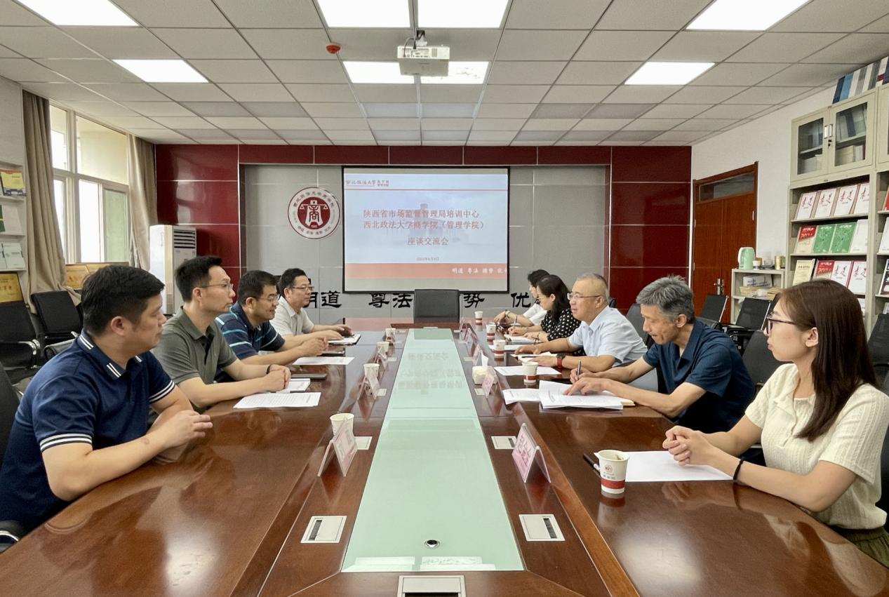 赵参对陕西省市场监督管理局赵广权主任一行表示欢迎,并介绍了校院历史、办学特色及对外开展合作情况。赵广权介绍了陕西省市场监督管理局培训中心主要业务以及与相关高校开展合作情况。座谈中,双方就干部培训、人才交流、项目课题等多方面深入交流,达成合作意向。双方表示,将充分发挥各自优势,深入开展合作,为我省市场监管工作高质量发展作出贡献。