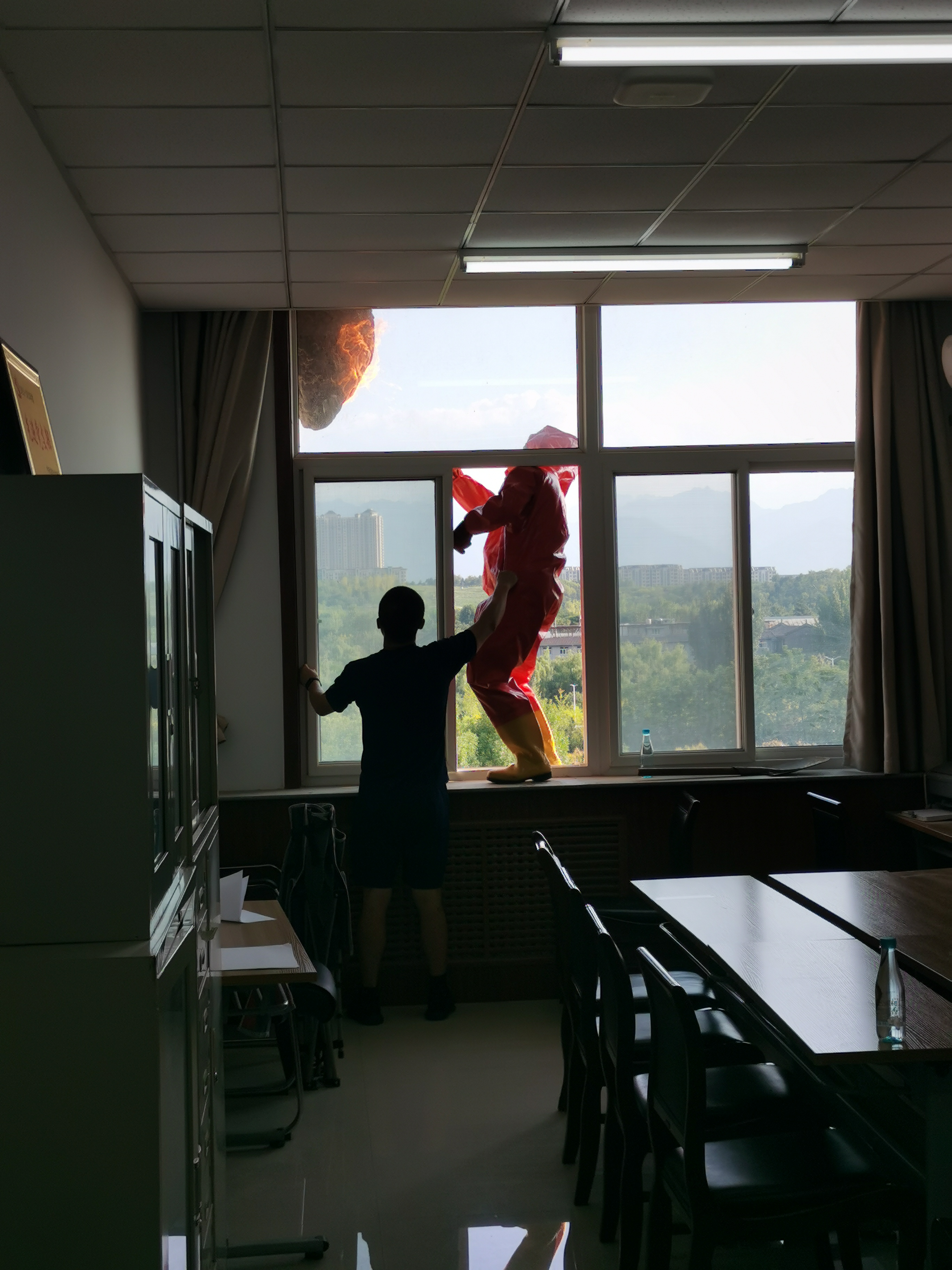 安全责任重于泰山,校园消防安全更是学校正常开展教育教学工作的基石。为彻底排除校园内的安全隐患,9月7日下午,在校保卫处积极协调下,长安区消防队到校摘除了位于5号教学楼6层楼体外的一个巨型马蜂窝,为校园筑起了一道坚实的安全屏障。