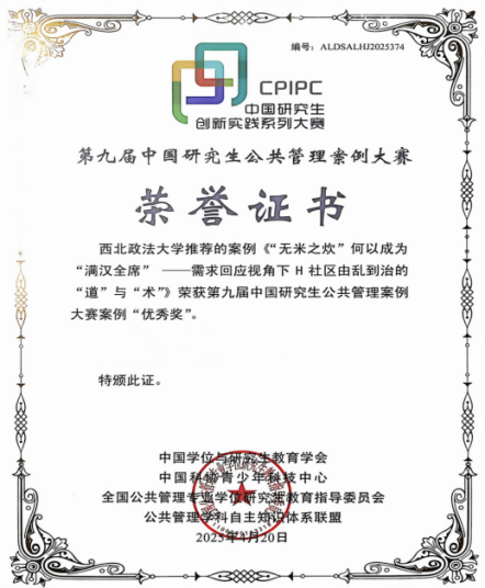 2025年参加第九届中国研究生公共管理案例大赛荣获优秀奖