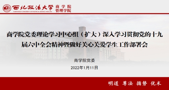 党委理论学习中心组(扩大)召开2022年度第一次集体学习会,深入学习贯彻党的十九届六中全会精神,对充分发挥党支部作用做好关心关爱学生工作进行安排部署。院领导班子成员、党委委员、各党支部书记及全体辅导员参加,会议由院党委书记朱茂主持。