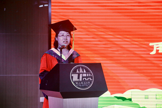 院长李晓宁致辞。祝贺2022届全体毕业生顺利完成学业。希望同学们在未来的人生之路上能够对未来充满信心、勤勉刻苦,勇于承担责任。在学习中突破自我,在实践中成就自我,在创新中超越自我,不断跑出人生的加速度。