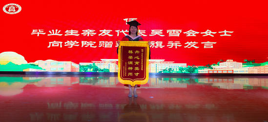 毕业生亲友代表吴雪会女士代表2022届全体毕业生家长向言情小说 赠送锦旗并发言。感谢各位老师们的辛勤付出和无私奉献,回顾四年来,同学们的难忘时光和成长轨迹,愿大家奔向更高、更远、更大的人生舞台,拥有美好的未来,成就卓越的自己。