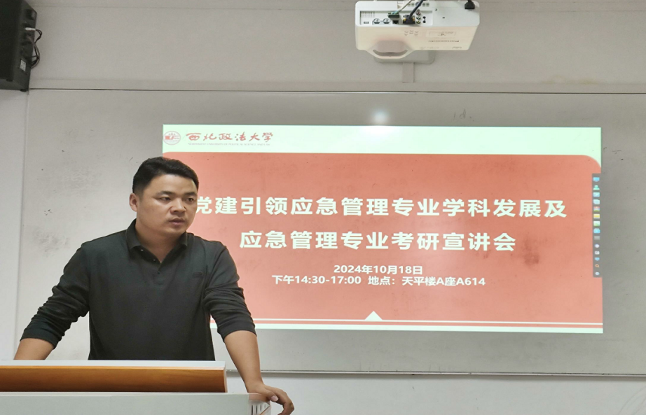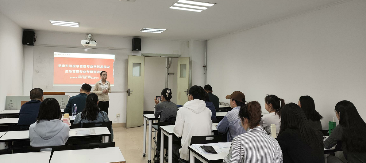 2024年10月18日,学院应急管理专业学科组在天平楼A614教室召开党建引领学科发展暨应急管理专业考研宣讲会。院党委书记参加会议并作报告。学院辅导员、应急管理专业导师组全体教师、22级、23级、24级应急管理专业全体研究生及部分本科生参加活动。会议由应急管理专业学科组组长王静教授主持。