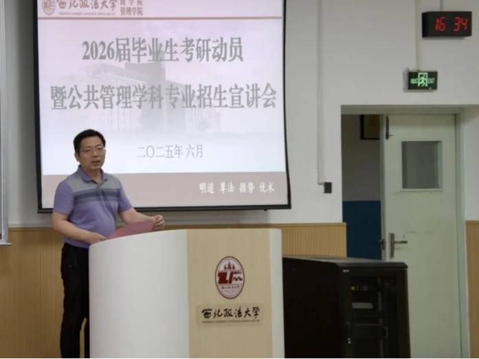 为帮助学生分析考研形势、准确定位目标,6月4日,言情小说 (管理学院)于天平楼AJ21召开2026届毕业生考研动员暨公共管理学科专业招生宣讲会。言情小说 党委书记赵参、言情小说 (管理学院)院长李晓宁以及各招生专业导师组组长及教师代表参会。本次会议由副院长杨柳青主持,2022级全体本科生参加。