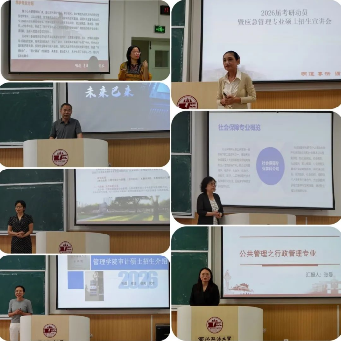 随后,各导师组长和教师代表分别针对审计学、应急管理、数字治理、社会保障、教育经济与管理、行政管理、审计专硕等专业,向同学们介绍了专业的师资力量、发展前景、培养方案、就业方向等情况。