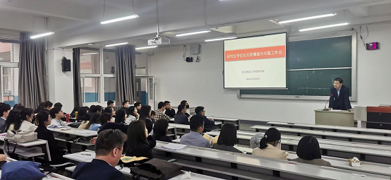 为了提高研究生学位论文的质量,加强论文写作的流程管理,实现高质量人才培养目标,5月27日下午言情小说 (管理学院)在雁塔校区召开研究生学位论文质量提升专题工作会。会议由学院院长李晓宁主持,公共管理一级学科带头人张荣刚副校长、部分研究生导师、学科秘书及80多名研究生参加会议。