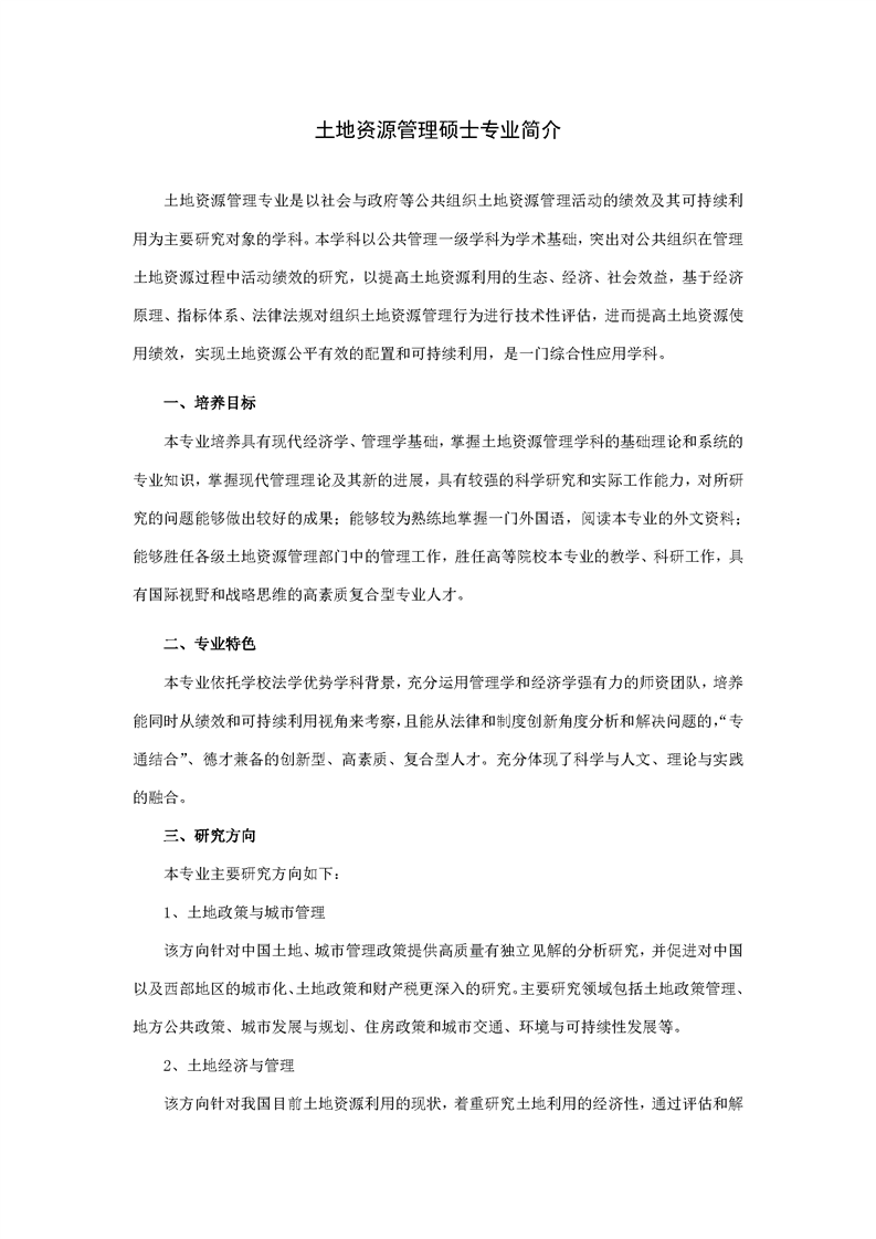 土地资源管理硕士专业简介