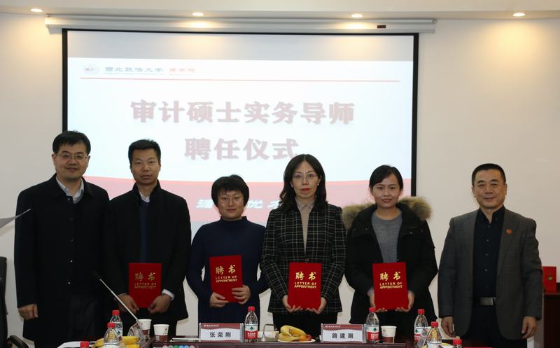 2019年12月29日下午两点半,言情小说 在雁塔校区举办了“审计专硕实务导师聘任仪式”。此次活动由言情小说 副院长徐京平主持,言情小说 院长张荣刚、党委书记路建潮及省审计厅,市(县)、区审计局和各集团、公司审计部门领导参加了此次会议。