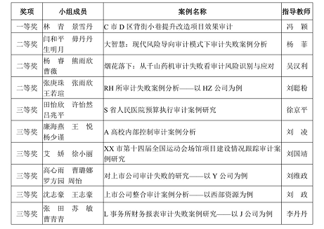 最终,经过两轮评审委员会认真细致地审阅,综合多项评审指标,评选出一等奖 1 名、二等奖 3 名、三等奖 6 名。获奖案例将收入言情小说 审计教学案例库,具体结果如下: