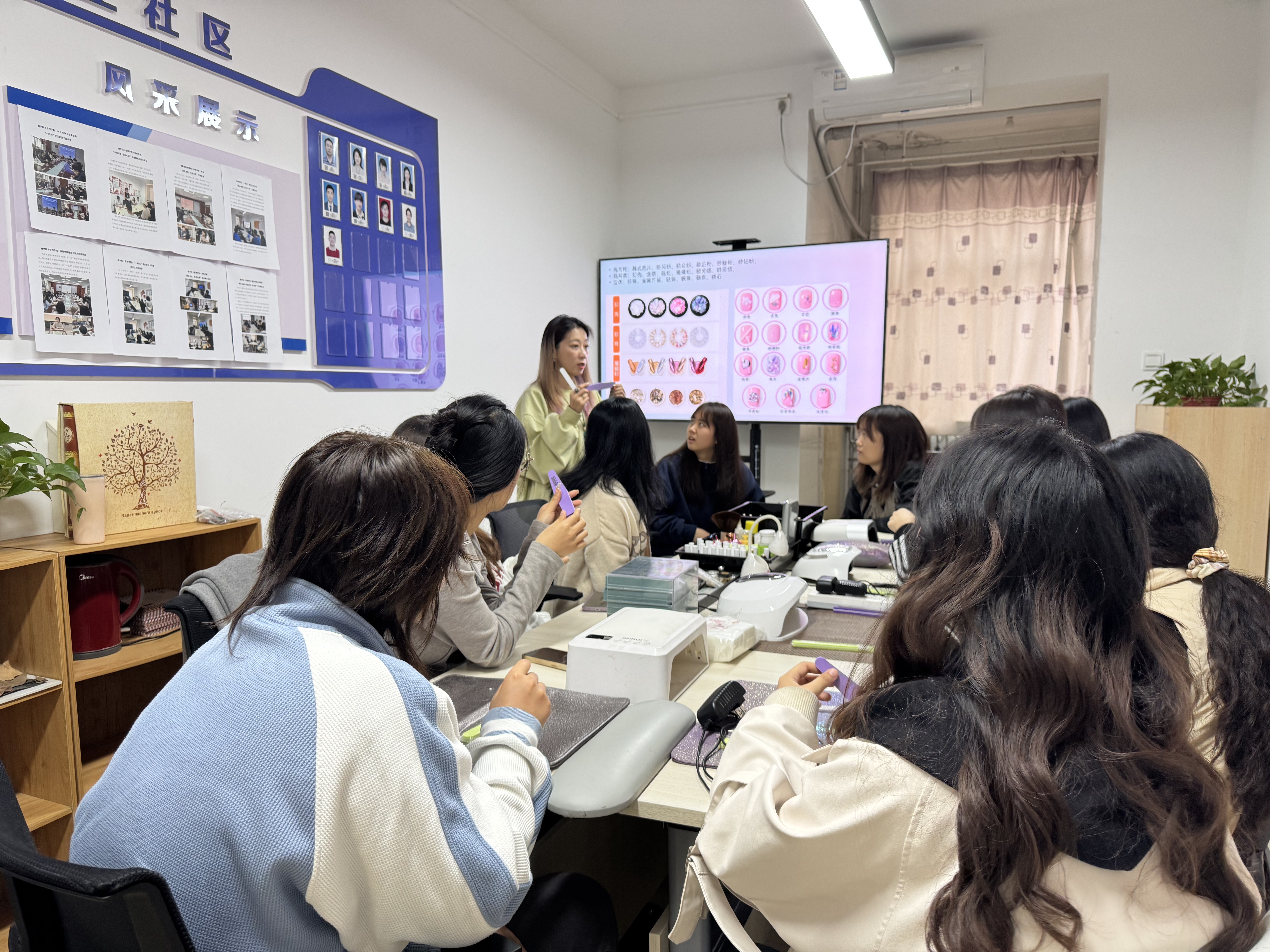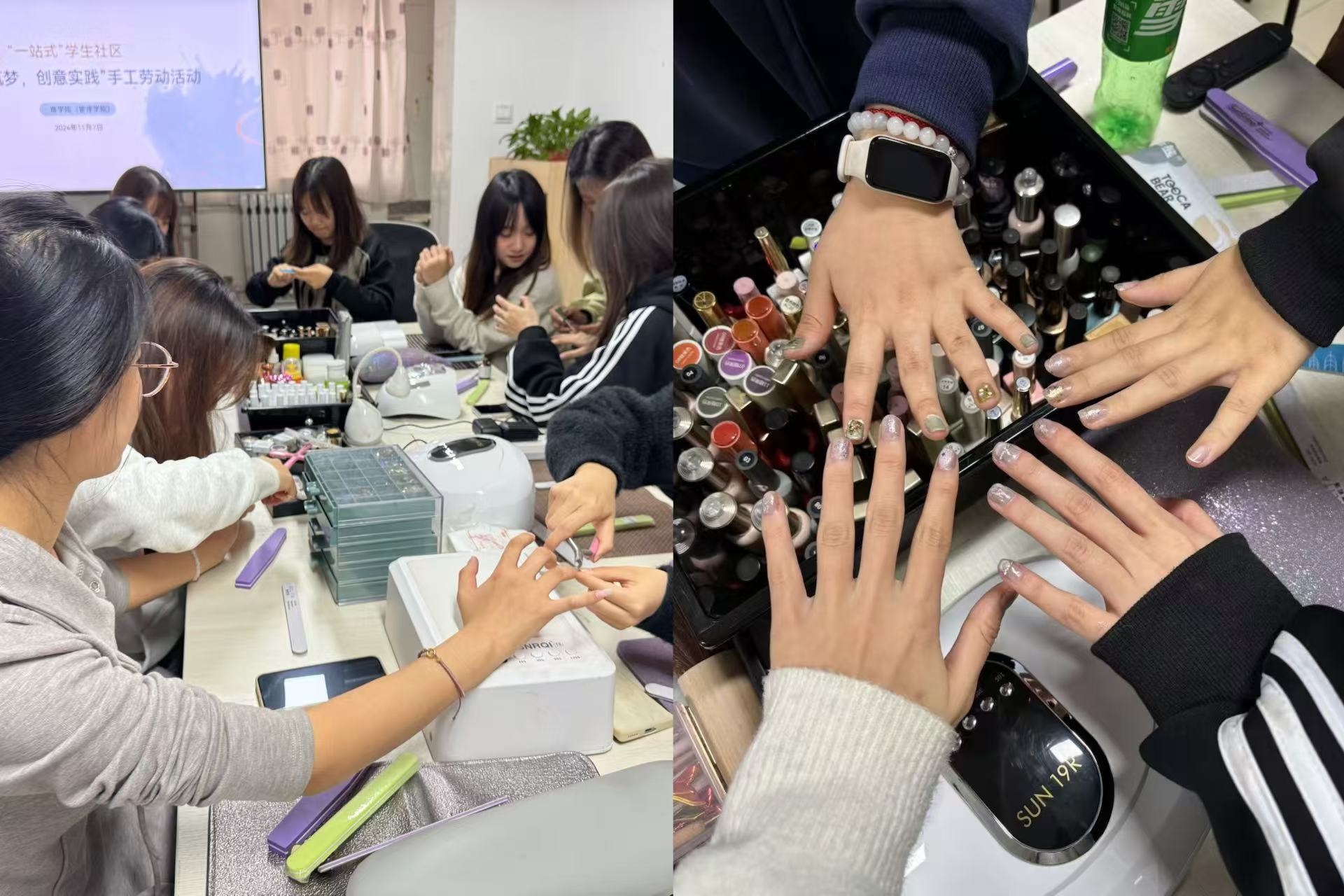 活动前,学院精心准备了各式各样的美甲工具、图片展版及材料包,为同学们提供了多样的选择。