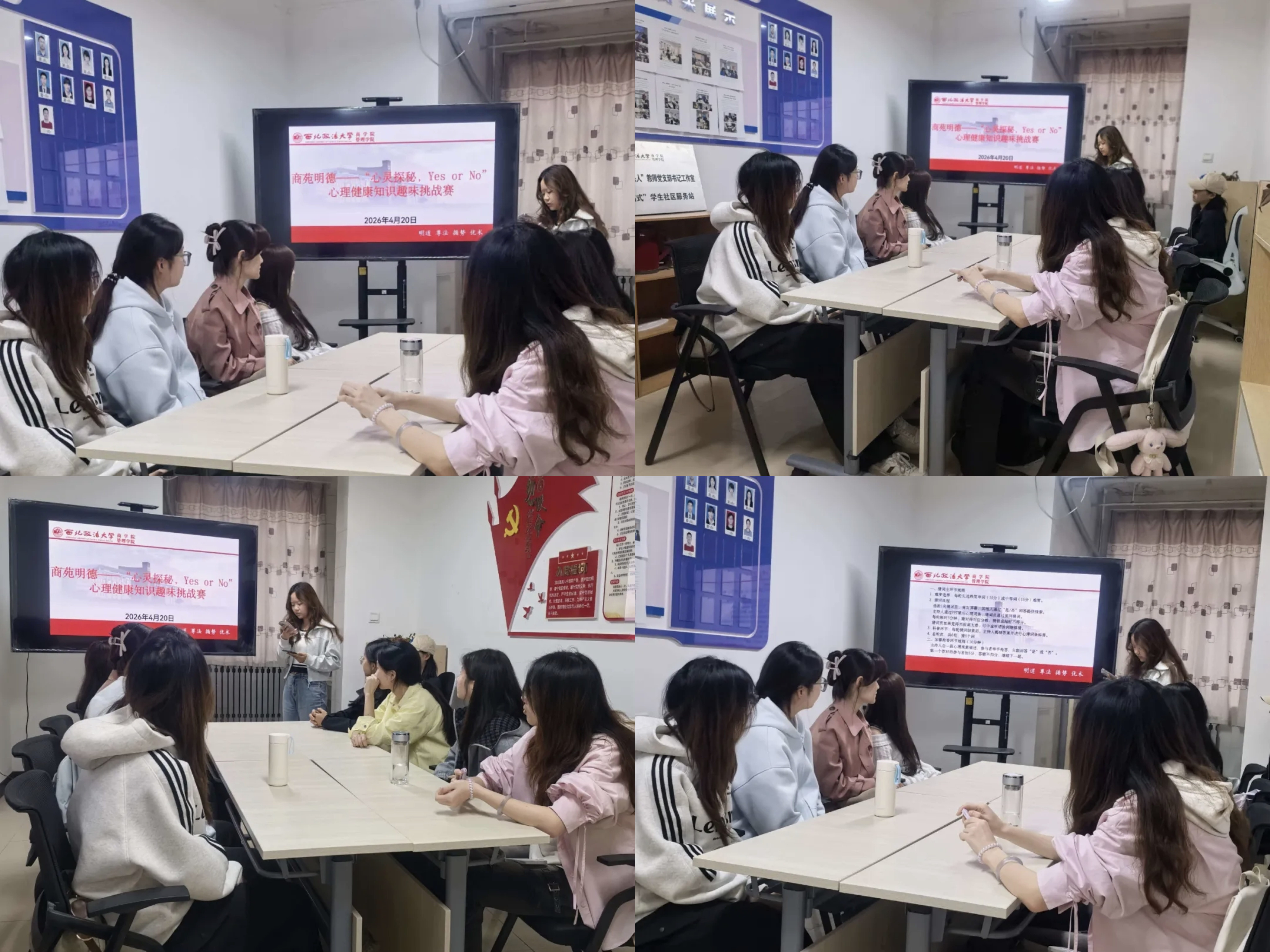 为进一步加强大学生心理健康教育,引导学生以积极心态应对学习生活挑战,4月20日,言情小说 “商苑明德”系列活动之“心灵探秘,Yes or No”心理健康知识趣味挑战赛顺利举办。