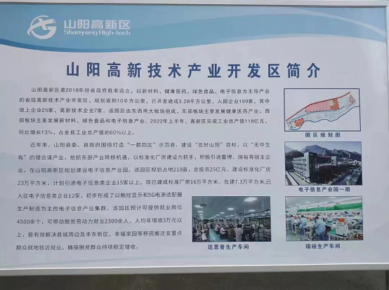 在与企业经理的访谈中了解到迈思普公司拥有松下、汤姆逊、富士康等国内外知名的优质客户,产业有规模,目前在手订单3亿元以上,且70%以上的产品销往欧美和日本、韩国等地,项目全部建成达产达效后,预计年可创汇5000万美元。就业有保障,迈思普公司高频变压器及消费电源一期项目带动就业500余人,项目全部建成投产后可带动就业1000人以上。发展有空间,下一步,山阳高新区将依托资源、依靠科技,不断增强企业自主研发能力,促进科技成果转化运用,力争到十四五末,入驻企业达到240家以上,实现工业总产值265亿元以上,成为推动县域经济高质量发展的强力引擎。