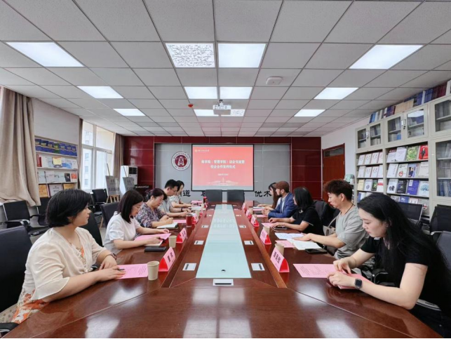 院党委书记赵参对两家新兴行业企业的到来表示欢迎,并介绍了学院的办学历史,开放办学情况,期待以共建实习基地为契机,加强资源共享、优势互补,相互促进高质量发展。院长李晓宁介绍了学院学科专业特色、学生实习就业情况,以及在数智化背景下新商科人才培养的创新实践,希望通过协同育人,进一步提高人才培养质量。