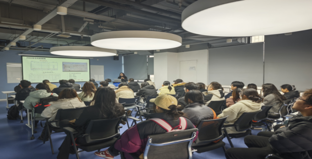 在互动交流环节,师生们积极提问,现场讨论聚焦于智能技术在审计、内控、财务管理决策等场景的具体应用,以及财务人才怎样构建“技术 + 专业”复合能力体系。交流中,两位总监结合行业实例,为师生提供了兼具前瞻性与实操性的建议,现场互动氛围热烈。