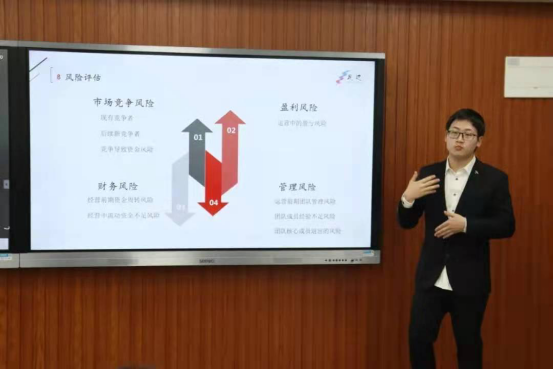 此次比赛每队由4--6人组成,各参赛队伍聚焦于生活中尚未解决的问题提出了自己丰富多彩的创意想法,通过自身生活体验和深入的社会调研提出严谨可行的创业项目,参赛队伍需用PPT形式阐述各自策划,由一个主讲人作以解释宣讲,其选手须在8分钟之间内完成对本次策划的阐述。