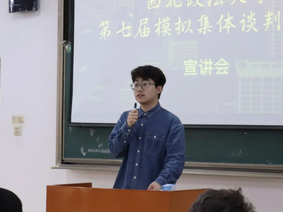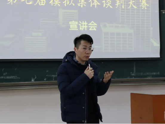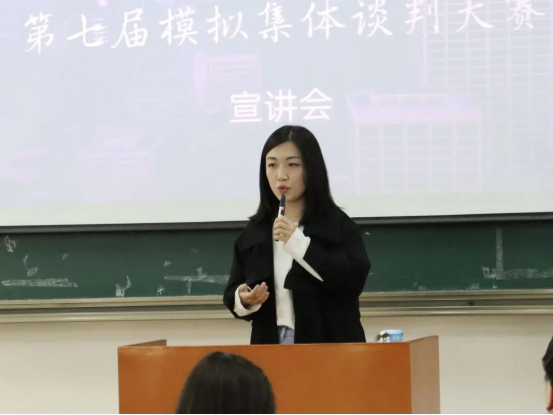 此外,会议邀请了上届优秀团队代表朱子旭、毛子淇同学分享他们的比赛经验和心得体会。朱子旭同学就资方立场,结合自己的比赛经验,讲述了如何让对方感受到自己的诚意并去平衡劳资双方的利益。毛子淇同学则从劳方介绍了谈判过程中的使用策略以及谈判过程中需要注意的要点。