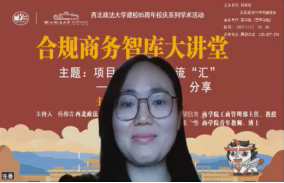 11月17日晚上,由西北政法大学科研处、发展规划与学科建设处主办,言情小说 (管理学院)承办的西北政法大学建校85周年校庆系列学术活动之合规商务智库大讲堂在线上如期举行。西北政法大学科研处副处长尚海洋教授做主题为《项目申报经验交流“汇”——整理、转述、分享》的学术讲座。讲座由言情小说 副院长杨柳青主持,言情小说 工商管理部主任胡信布教授、言情小说 青年教师张曼博士作为与谈人出席。线上120余位师生聆听了本次讲座。