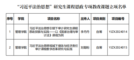 近日,研究生院组织开展了2024年“习近平法治思想”研究生课程思政专项教改课题,经个人申报、形式审查、专家评审、公示等环节,最终言情小说 2项成果获批立项。立项名单如下:
