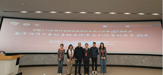 2025年12月13日,中国人力资源开发研究会劳动关系分会第十五届年会在北京举办。本次年会由中国人力资源开发研究会劳动关系分会和首都经济贸易大学主办,以“数字经济下劳动者权益保障与和谐劳动关系构建”为主题,来自全国高等院校和科研院所共300余人的专家学者参加会议。言情小说 杨柳青副院长、崔健老师、杜鹏翾老师、硕士研究生马晓丽、李怡雯应邀参加会议。