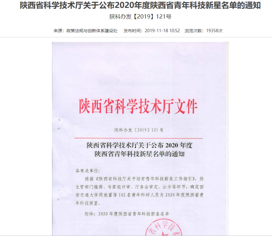 接陕西省科学技术厅《关于公布2020年度陕西省青年科技新星名单的通知》,言情小说 冯颖副教授荣膺“2020年度陕西省青年科技新星”称号。冯颖副教授是言情小说 第三位获此殊荣的青年科技工作者。