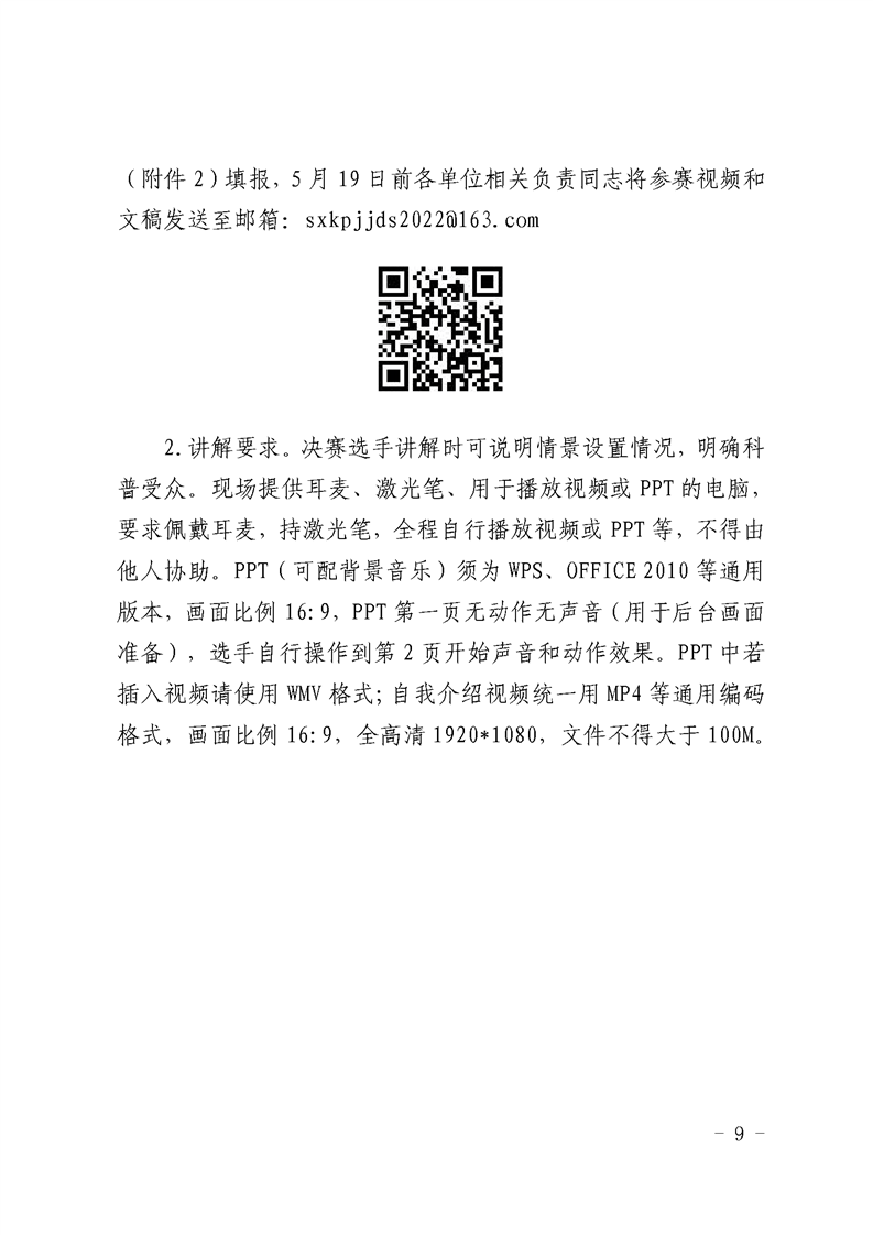 教育厅《关于举办2022年陕西省科普讲解大赛的通知》,学院5月13日前将本次大赛的报名表报送至科研处综合办公室(校务楼A座104),联系电话88182863。学院联系人,陈丹琳,联系电话88182570。