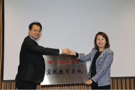 学生代表王于博参加签约仪式。双方签署了教学实践实训基地合作协议,并举行“西北政法大学实践教育基地”授牌仪式。